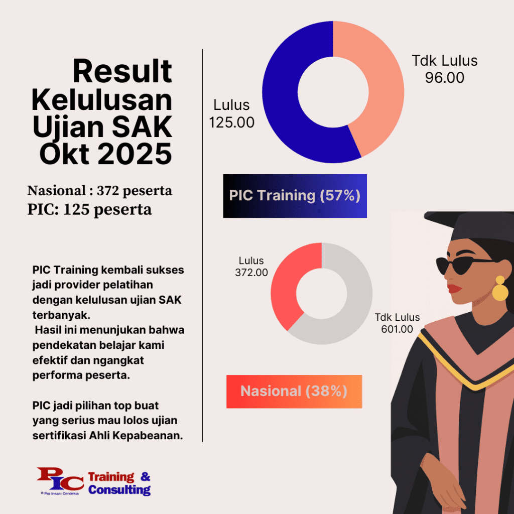 Statistik kelulusan peserta PIC Training dalam beberapa periode ujian SAK terakhir menunjukan bahwa PIC masih menjadi provider training yang terbanyak menghasilkan lulusan Ahli Kepabeanan